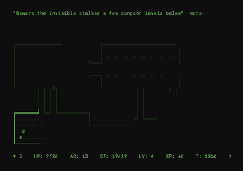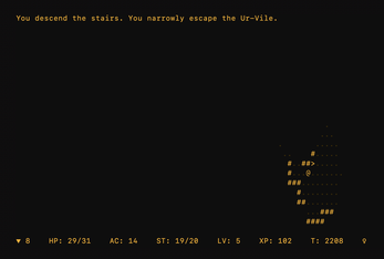 Undervault is a traditional ASCII dungeon-crawling game inspired by the original Rogue (1980).