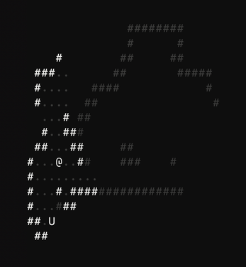 The dungeon and its contents are drawn to the terminal using the text characters listed below.